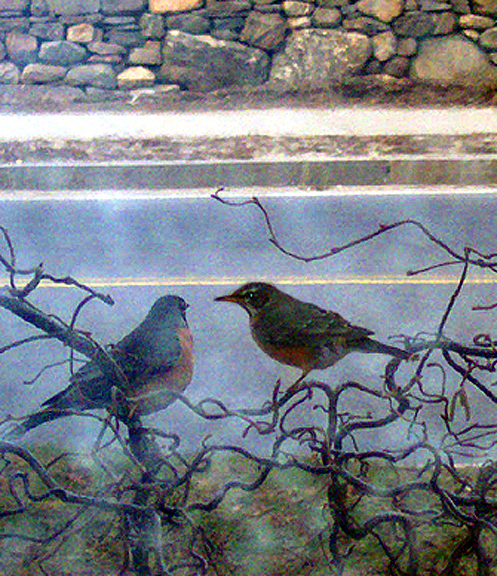 | Mr. Robin was relieved to see his mate home safe and sound.