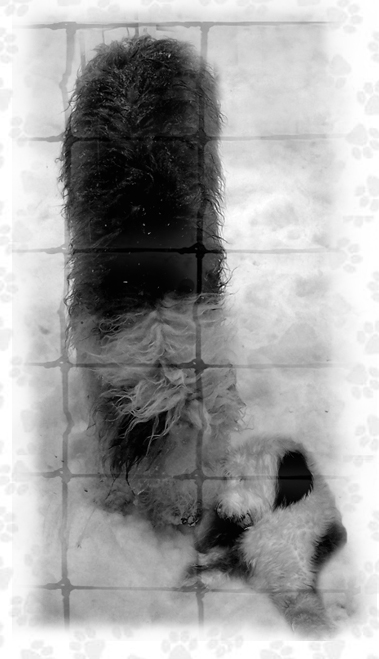 All of her puppies died.  All except one that is, the little shaggy dog over there starving."