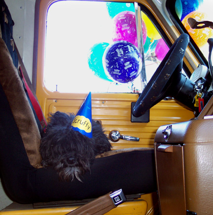 "Hop on Board the Birthday Bus!" said Scruffy.