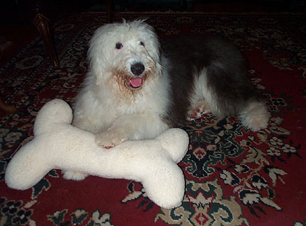 "Sometimes life can get a little ruff," she said. "Love and presents can remind you that I love you always.  Besides, these presents are from the best day of my life.  You can be certain that any time you sleep on a bone-shaped pillow, you will have sweet dreams!"
