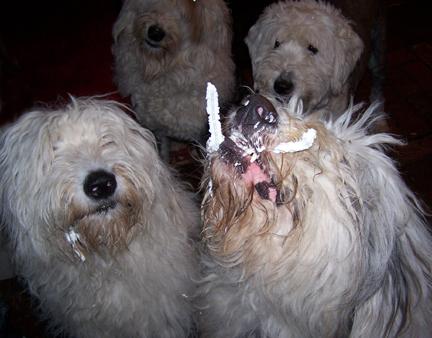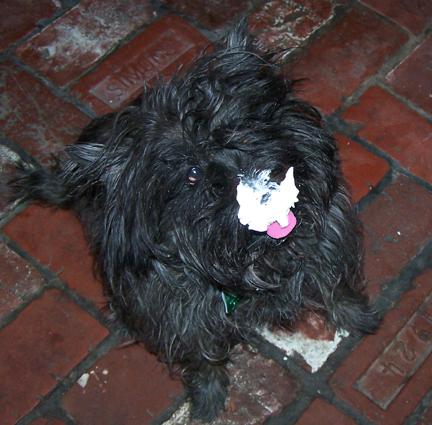 Molly got a big glob of whipped cream on her face.  She was able to lick it off everywhere except for the top of her snout!