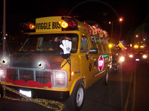 Uprights and their dogs, all shapes and sizes, came out to see the pawrade.  Little did they know that all the lights and noise were really helping find Santa!