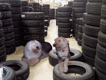 Meanwhile, back at the tire bay, Wiggle was finishing up with her fitting. "These feel wonderful!" she told the guys! I feel like I could drive 100,000 miles now! Four new tires! My friends will never believe it!"