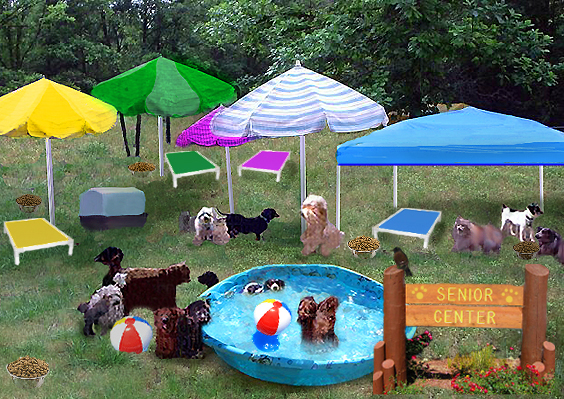 "Indeed," said the forest birds. "Just look at all those elderly dogs and special needs pups in their own little piece of heaven."
