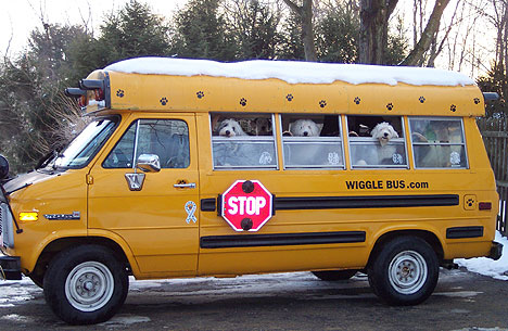 After they said goodbye to the tearful uprights, everyone jumped in to the WiggleBus to drive Hank to the pawphanage to be adopted..